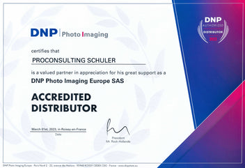 Ja – wir sind offizieller und seit mehreren Jahren in Folge, von DNP Photo Imaging Europe zertifizierter Distributor. Das bedeutet, dass wir ausschließlich Originalprodukte mit lückenloser Rückverfolgbarkeit und fachgerechter Lagerung anbieten und des Weiteren direkten Zugang zu neuesten Entwicklungen und Updates haben.